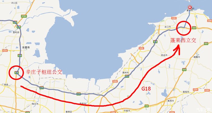 在辛庄子枢纽立交往东走,沿着荣乌高速一直前行到蓬莱西立交下高速(250公里)