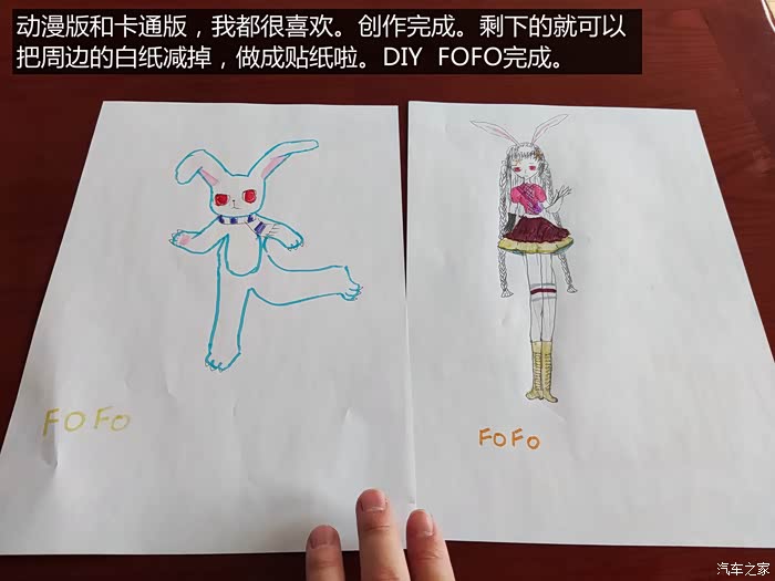这次福域推出了我的兔兔DIY。让大家自己动手创作心目中的FOFO。正好孩子喜欢画画,就想做个贴纸吧。画了两种风格,一种动漫一种卡通。儿童简笔画,但是小孩子无师自通,很喜欢画画,写完作业,还可以把画画当玩了,也挺好。最后画好的兔子也很成功,我也很喜欢。小孩也知道了福域的吉祥物是只兔子,叫FOFO。