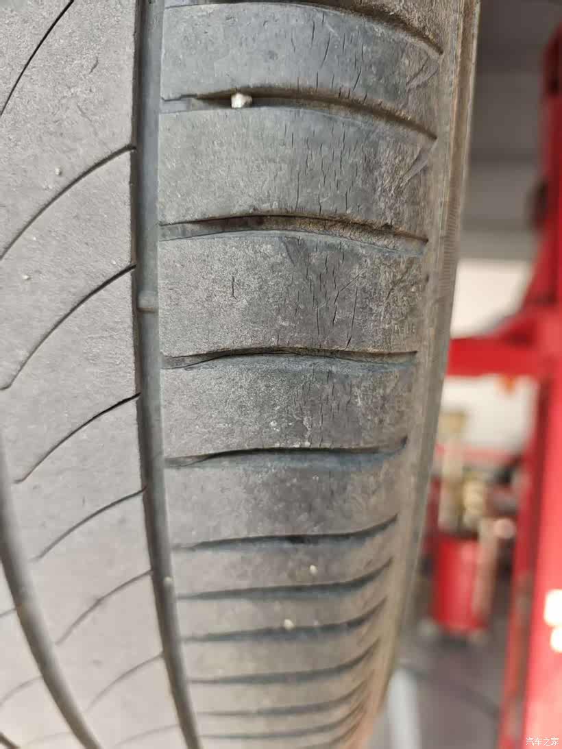 原车米其林轮胎,三年前换两条前轮的,因为当时换胎师傅说了一句“还能再用两年”,结果就是后胎一直没想过要换。今天做保养的时候,师傅说后胎该换了,才想起来,已经是用了十年,十万公里的胎了。