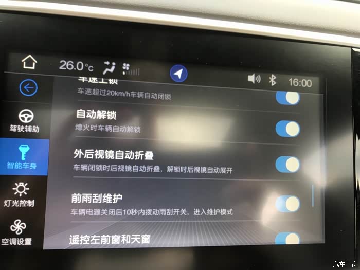 最得意的就是它的自动灯和自动雨刷了,白天他会自动感应关闭大灯,晚上会自动开启近光灯,无论是你过隧道,停车熄火下车,它都可以自行解决,不用担心忘了关灯亏点,晚上手动开灯的多余操作,移动雨刷也能感应雨的大小来自动调节雨刮速度。