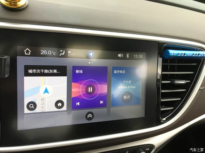 8寸彩色中控大屏,这个有点缺点,偶尔会出现触摸不灵的现象,不知道是手出汗还是什么原因。没啥大影响。