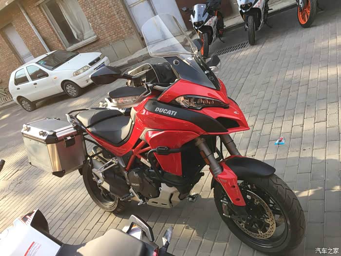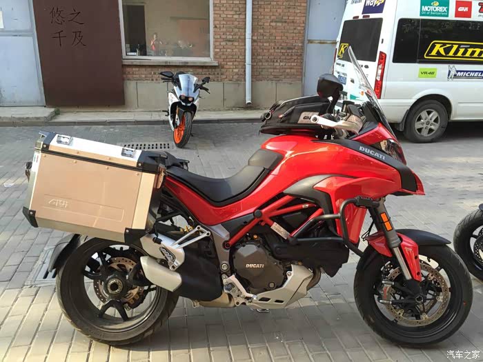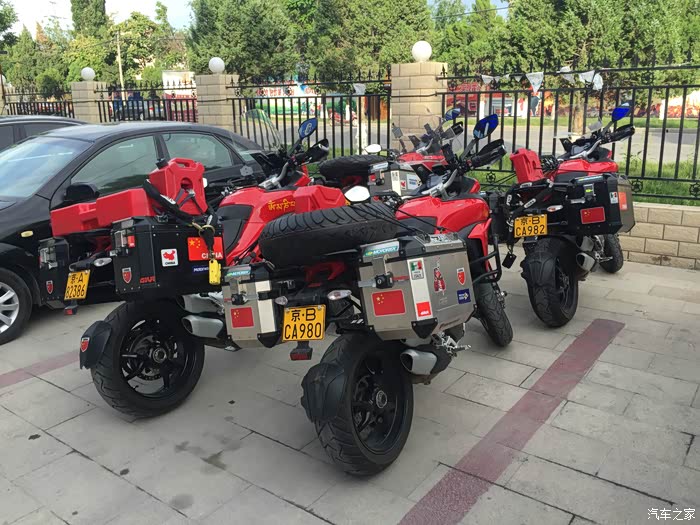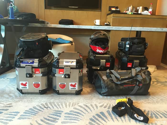 最后就是此行最大的主角了,我们的车:DUCATI MULTISTRADA,中文名:揽途。是目前我骑过的最有乐趣的ADV车型。针对长途旅行,我们做了很多必要的改装,这里要特别感谢@摩德威 的吕飞,由于我们的新车是4月底才在国内上市,所以全亚洲都没有像护杠、风挡、边箱这些改装件。多亏了浪骚贱的吕老板帮我从意大利订了GIVI(杜卡迪官方供应商)的改装件,以中国总代的资格把4套装备单独发了空运的一箱货。才解决了我出行的一大难题。