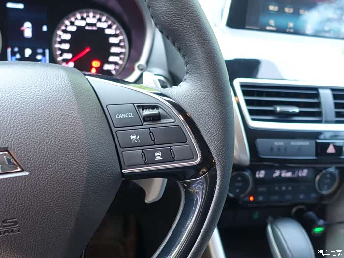 方向盘右边的按钮,自动巡航系统,高速上开启会自动定速,要是前边有阻挡会自动减速。