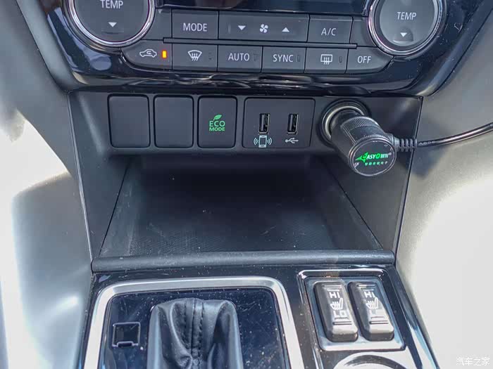 小小的手机储物箱,USB的插电口和U盘的播放插口都在空调下边。