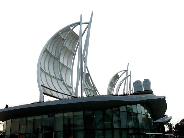 这叫海之贝,里面是三层结构,还有地下层,各种展览馆, 结构特别有形。