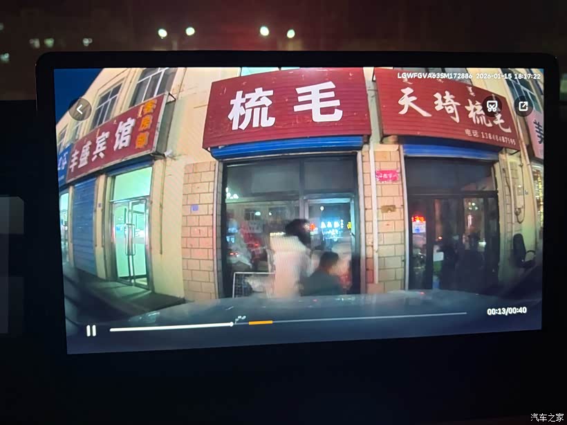 哨兵模式开启后,白天光线强,录的视频自然是一清二楚,所以不需要过多的担心。但夜间受光线影响再加上我有时停车的地方还没有路灯,要是录的不清楚那可真得担心了。好在就算是晚上它录的视频清晰度也在线。就像现在我正在查看前几天在西安街停车的视频,同样是夜间同样是没有路灯,从录像中可以清晰的看到广告牌名称还有行人的面容,非常nice。