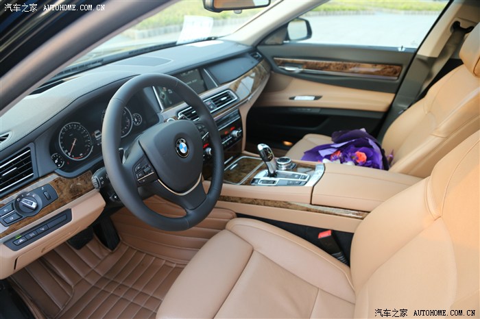 ;第三俩是别克新君越2.0T,冲动的选择也是错误的选择,始终感觉不是自己的菜,只陪伴了一年就被我扔在了公司公用;第四辆是拥有北欧王室血统的沃尔沃XC90,低调厚重,沉稳大气,到现在为止陪伴了我将近三年,我忠实的保镖,绝对的肌肉男,和我已经达到人车合一的境界,以后仍将继续护卫着我。从拥有XC90开始这几年的收成就节节攀升,所以压抑在心头很久的那个梦想就不可遏制的有如火焰一样燃烧起来,自己终于决定在步入不惑之年后,是时候实现自己多年的梦想了-------迎接我的蓝天白云回家。剩下的事就简单了,上论坛先潜水学习一段时间,然后直奔宝马4S,别的品牌根本就没考虑,连看都懒得去看,个人感觉D级车里唯奔驰S和宝马7堪选,奔驰S气场强大,霸气十足,有如睥睨一切的霸主,宝马7高贵富丽,风姿绰约,有如风华绝代的女王。我已经有了一个北欧肌肉男,所以就直接选择驾驭我的女王了。我们这里一共两家宝马4S,最后选了一家新开业的,我的小七定的是740豪华,宝石青外,浅马鞍棕内,我最喜欢的搭配,一开始4s告诉我液晶仪表需要加8000元,我怕是库存车,就否了,我点名要近期出厂的,结果叫我等来了14款的小七