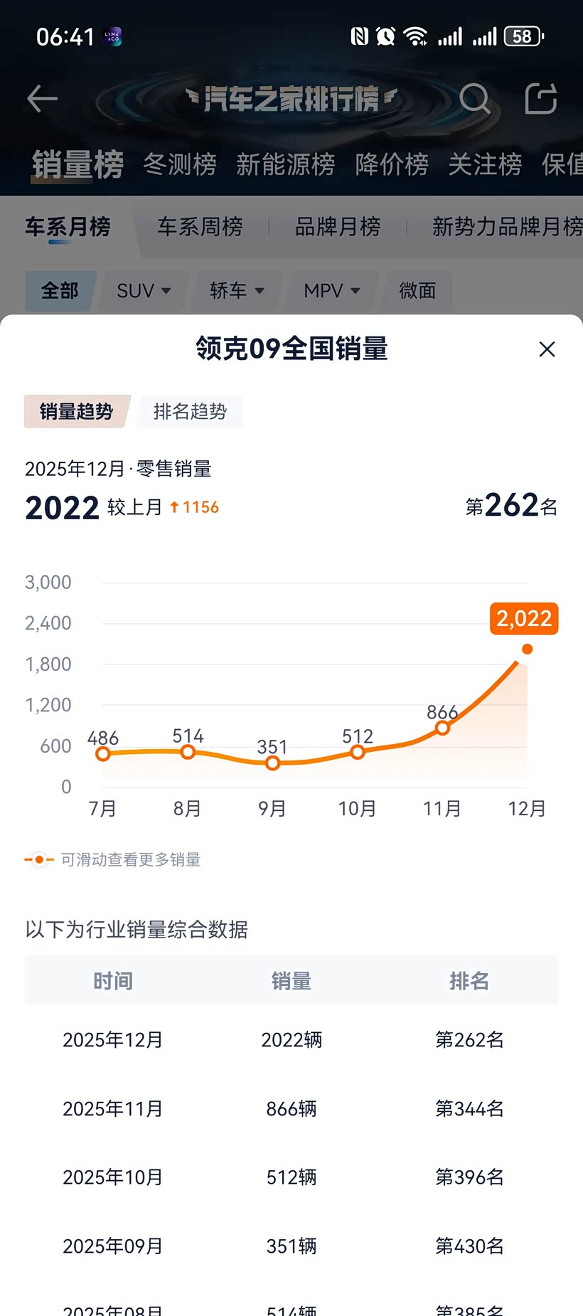 看看这个销量就知道了,领克09的优秀终究是要被发现的,终究是藏不住了,领克09的销量还会继续增加,因为开了四年我知道他有多香!
