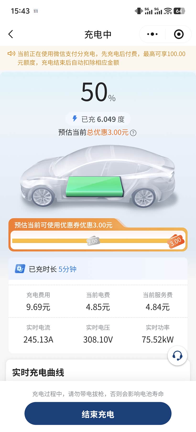 从图片上看,实时电流达到了245A,这是很大的电流了,这充电速度是很快的了。这应该是超级充电桩。一般的快充桩,充到50%时的电流能达到120A以上就算挺快的了,有的快充桩在充到50%时电流只有90A以下。