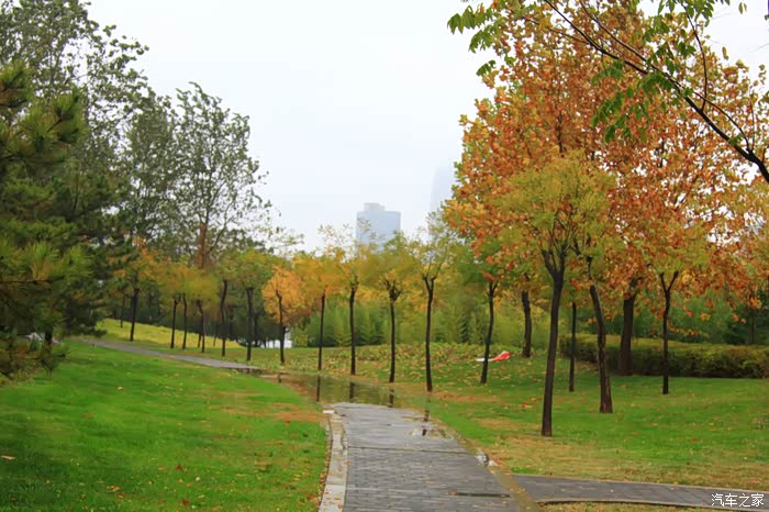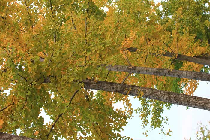 银杏叶也由绿变黄,是风让你变成这样的色彩,还是你的的多变的色彩让风羡慕,不管怎么样,你始终是秋天里最美的风景,金水河边,也是一道亮丽的风景,虽然有点冷风,但是依然抵挡不住树叶绽放光芒。
