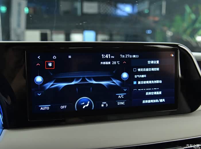 2、点击中控台空调控制区域左侧的空气净化图标按键。即可开启车辆空气净化功能。