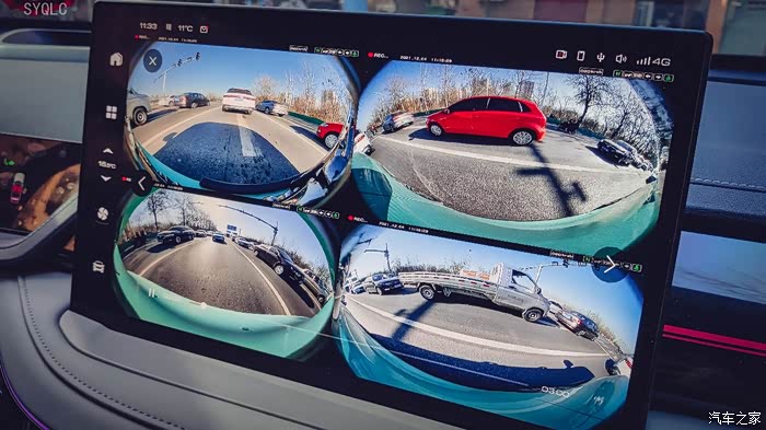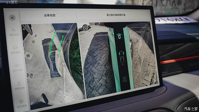 3.360度影像+透明底盘有着不错的体验,对于窄巷蠕行+非铺装路面行驶有着较高的实用性。值得点赞的是,在影像模式下驾驶员可点击屏幕来获得想要的视角(前后+两侧均可获取),还可以滑动屏幕右侧的车辆模型来调整天空视角。