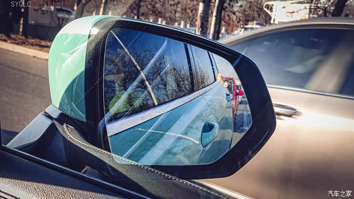 6.侧后辅助很实用,对于并线盲区而言往往通过后视镜右上角灯光即可获得更为准确的并线预判,这一辅助对于在复杂路况下的驾驶很有帮助。