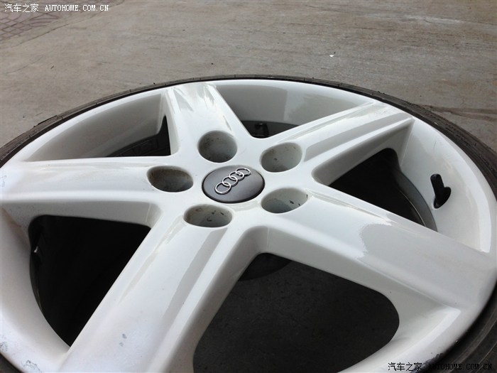 换轮毂,老老款A6原厂轮毂,喷白,没办法斯柯达的轮胎盖孔距不匹配装不上去,只能将就用四个圈了!
