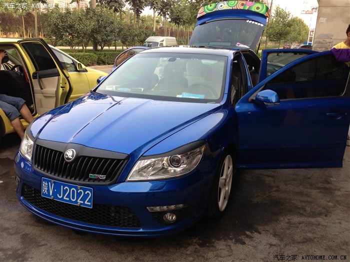 又过了度毫秒如世纪的一周后,通过一业内朋友介绍,在另外两家(当时西安只有南、北、西三家)斯柯达4S店一番漫长的砍价之后,一咬牙,一狠心,(不就是RS贵了些了,省吃俭用、好好工作赚回来!)果断选择了现金优惠更大的一家,也怀着无比“鸡冻”的心情,开启了我的低调小钢炮圆梦之旅,当时该店内只有红蓝黑三色,三者之中老爹和我选中蓝色,果断干脆验车,提车(在买车之前,备选的大部分车型,都试驾过,唯独RS没有试驾过,悄悄的)!
