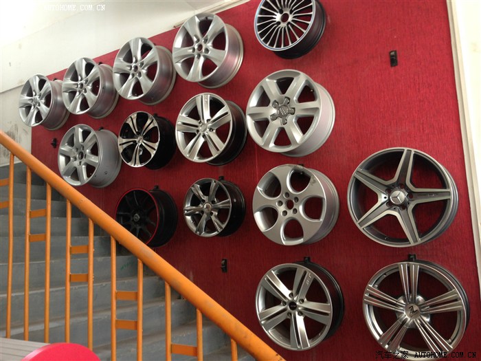 修车店一墙的轮毂!