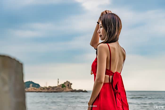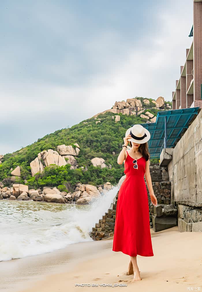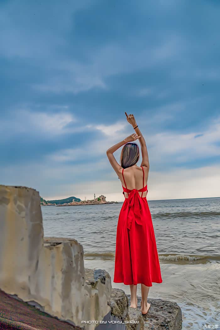 沙滩照当然不能少了我家的御用模特了,红裙配沙滩,确实夺目抢眼。
