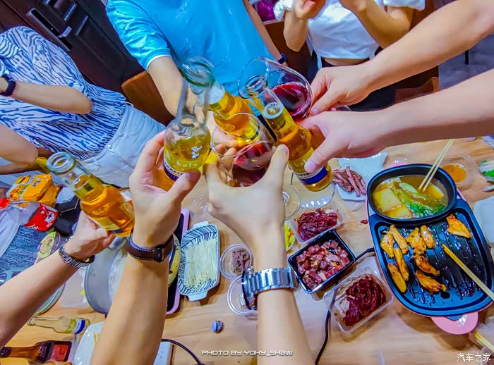 车友们有的是第一次见面,刚开始还有点放不开,几杯过后,大家都畅谈起来,举杯相碰气氛更加融洽了。