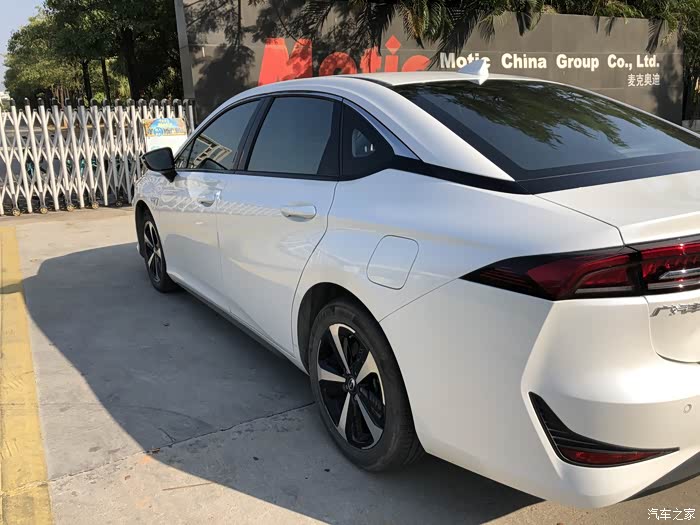 今天天公作美,格外的晴朗,这辆白色的iA5在阳光的照耀下泛着光芒,很是吸睛,搭配上周边的绿树青草,很是应景呢!