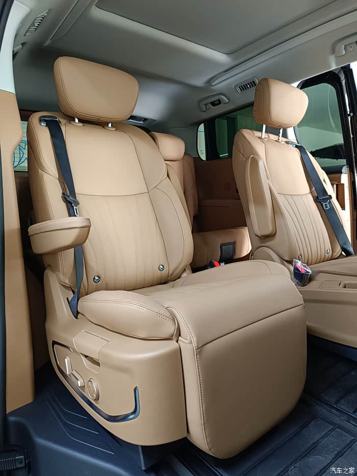 拉开电动侧滑门,2870mm轴距营造出越级空间。第二排航空座椅支持16向调节,腿托展开后配合座椅通风/加热,实测身高185cm的体验者仍有两拳膝部空间。最惊艳的是第三排创新设计: