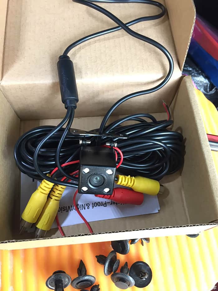 我的倒车影像是提车时在4S店跟导航一起安装的,至今已经用了快7年了。期间摄像头的线经过后备箱折角处断过几次,我都自己接上了,最后一次是换了两根耐高温的线就再也没出现过断线的情况。最近一年多,倒车影像图像开始不清楚了,越来越模糊,尤其到了晚上后面几乎啥也看不到。前些日子坐朋友的车,他的摄像头刚换的不到两年,看到他的倒车影像那不是一般的清楚啊!果断决定,换摄像头!问了一下朋友,他的摄像头就是在电子市场买的,大概四五十块钱,还不贵。因为我之前的摄像头是圆的,现在大部分都是方的了,不知道能否配上,去市场转了半天也没找到我以前的那种,只好买个方的回去研究研究吧。
