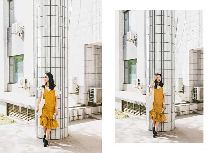 像图中这种的柱子,让模特往上面轻轻的靠着,
