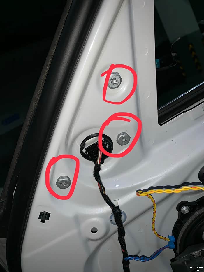 7、拿掉高音罩子,没高音的话简单,有高音的话线头注意。就能看到反光镜的三颗螺丝