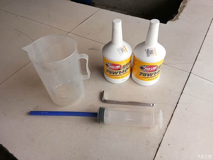 上次用的是75W90的差速器油,配合CUSCO的摩擦片差速器开了大约5000公里,2-3千转匀速开会稍微有点异响,啸叫声。不知道是不是都这样。于是这次准备更换下75W140的差速器油,粘度更加高些。不知道异响的情况是否会有改善。先用用试试吧。2瓶红线75W140差速器油,CUSCO原厂的太贵了。所需工具,一把10mm的内六角扳手,一个加油用的大针筒。底下是放油螺丝,松掉就可以了。5000km的油挺脏的,比想象的脏。放油螺丝,中间带磁性,吸满了小碎屑擦干净了。旧油放出来,1.15L 说明书上好像写的是1.1L吧侧面的螺丝拧下来,准备加油。一瓶倒光,正好0.95L的样子。需要再加点。也加...