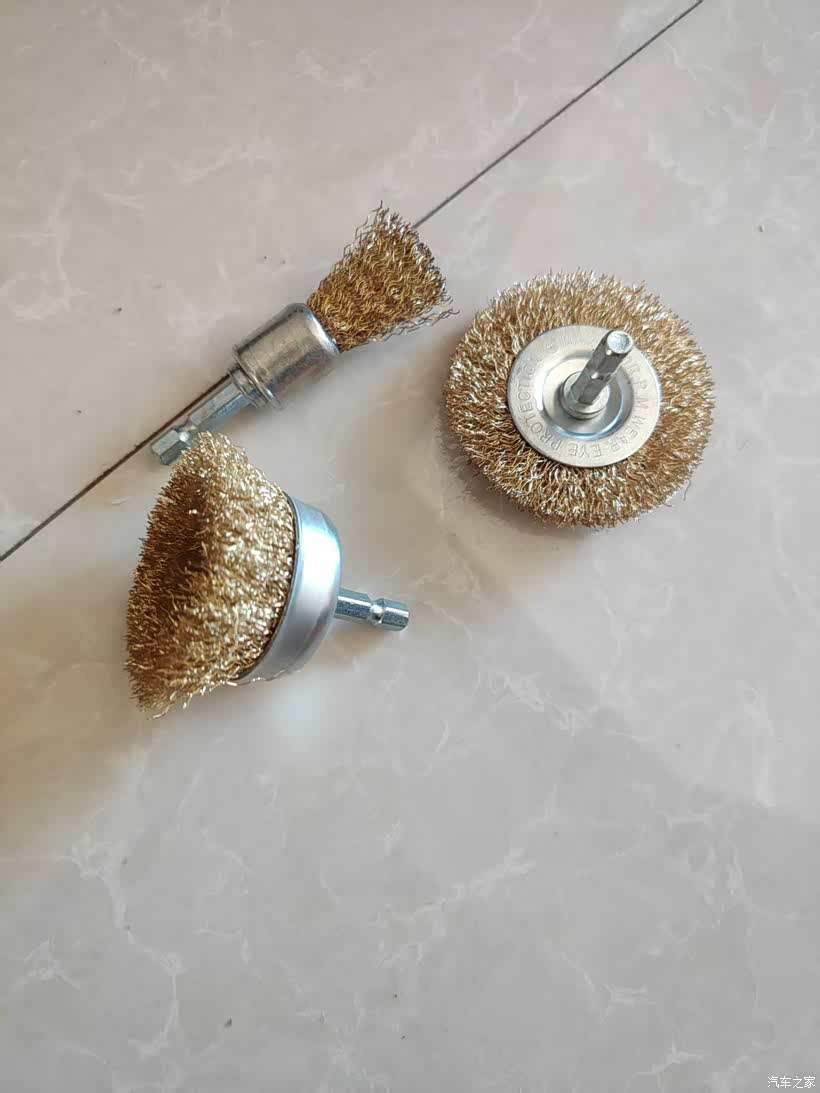 先拿这种铜丝刷配合手电钻把能打磨到的锈迹都处理了一下,可惜很多地方不好打磨,只能把看到的地方尽量处理了一下。