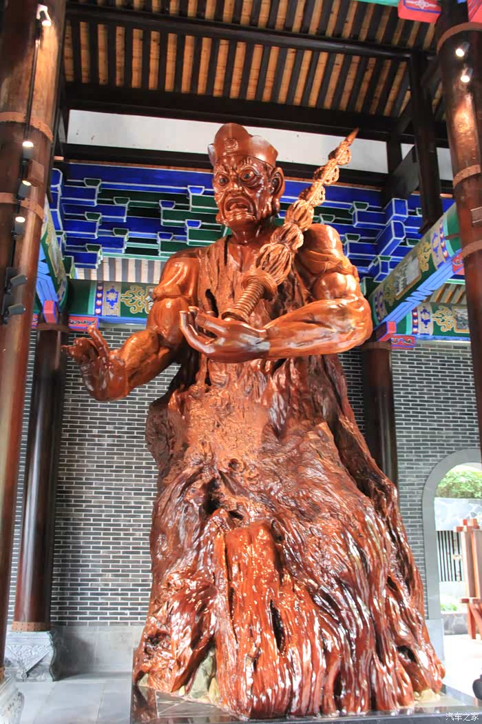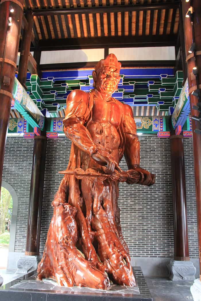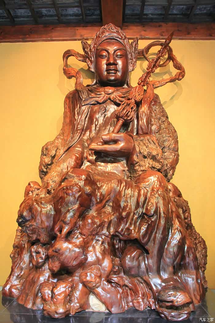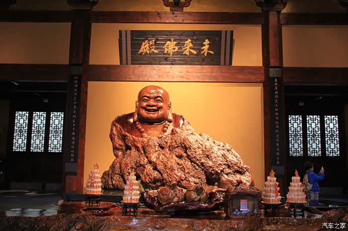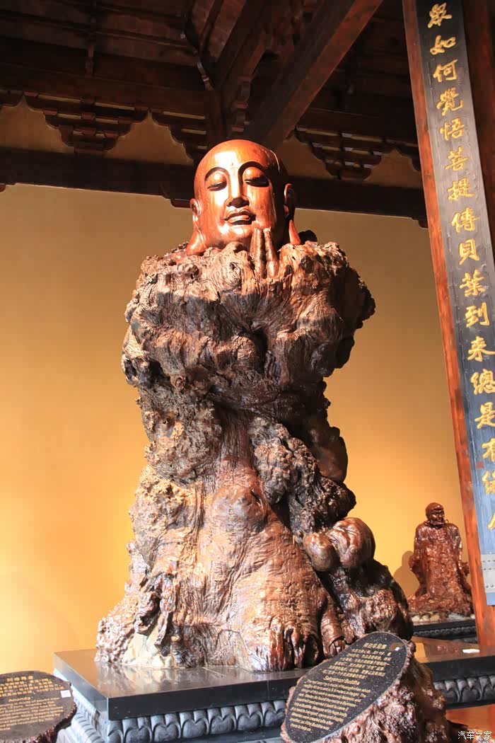 巨型释迦牟尼根雕:高9.9米、重40吨,选用3000年树龄的阴沉木或楠木根雕成,材质珍贵,工艺精湛,是景区内最庄严的佛像代表。