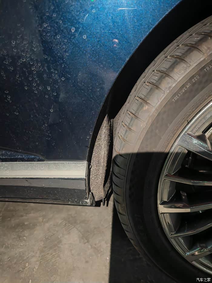 验车时看底盘,貌似和之前之家上工作人员拍的底盘包裹不一样,这个看到至少是有底盘保护的吸音材料覆盖的。