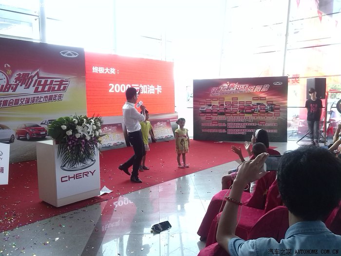 下图为订车现场 ,主持人带两可爱小朋友在表演小苹果