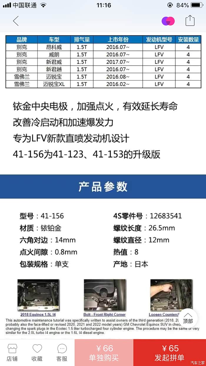 车7.5万公里,火花塞早备好了,买的是NGK的ILNAR8B7G