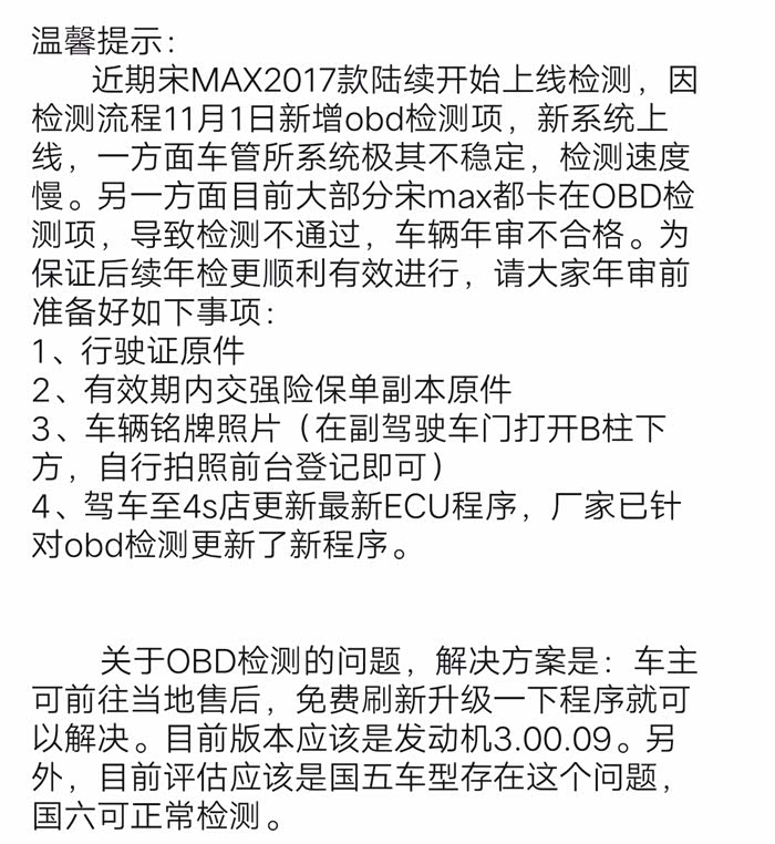想着自己不到两年的车,年检居然过不了~虽然对比前两台还没上牌的罗密欧,自己还稍稍好了点,带着郁闷的心情我联系了4S店,4S工作人员回复暂未收到年审不通过的信息,建议车辆到店检测,有发现问题会和厂家反馈。第二天就接到4S店通知,厂家有针对OBD检测不通过的情况作出处理方案,需到店升级程序解决。于是便驱车前往,升级等待的时间和技术经理聊了下,时下各车企OBD都有各自的通讯协议,而车管所检测设备是按国标设计的,检测不通过是因为ECU系统未开发查询接口协议,导致传感器读取失败,审车不通过,需通过升级ECU程序来解决。另一方面OBD检测设备由于刚上线,一些人员使用操作及设备的稳定性还需时间磨合。