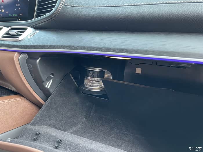 奔驰GLE450升级原厂香氛负离子系统,需要的配件由一个香氛发生器,一瓶香水,一个负离子和一条香氛传输管组成,将香氛发生器和香水安装在储物箱里面香氛盒内,通过中控屏幕的设定调节,营造出宜人的氛围。