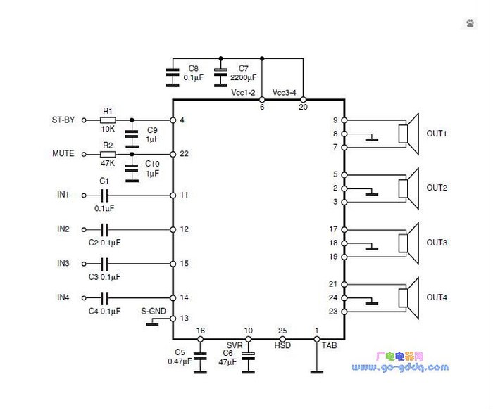 先盗一张图,TDA7850引脚定义...
