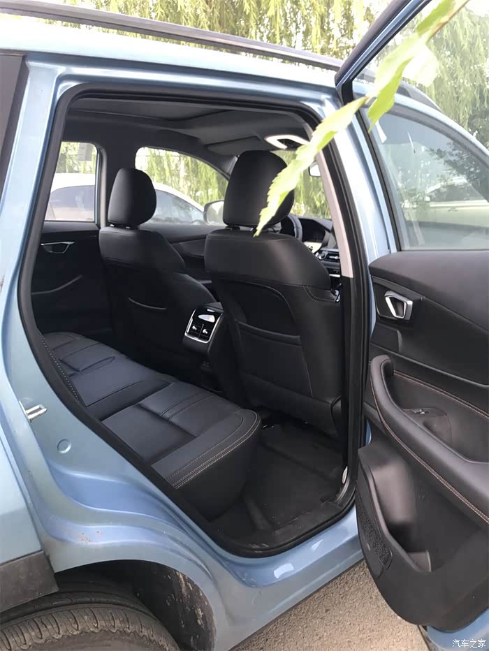 空间丝毫不逊于燃油车,我男朋友一米八五体重一百八十斤的体格子坐进去头部和腿部还有挺大距离,后排座位放倒后还能形成一个很棒的储物空间。