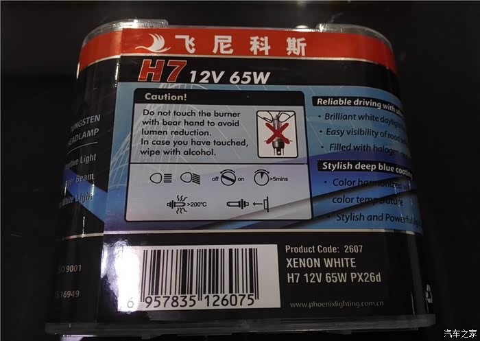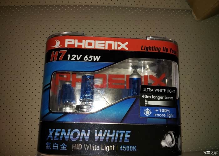 车灯亮度关系到我们自己和他人的生命财产安全,原车的蜡烛灯用了好几年了,晚上和下雨天效果已经很差了。精彩提心吊胆的开车,本次下定决心换灯泡,买了飞尼科斯的氙白金灯泡