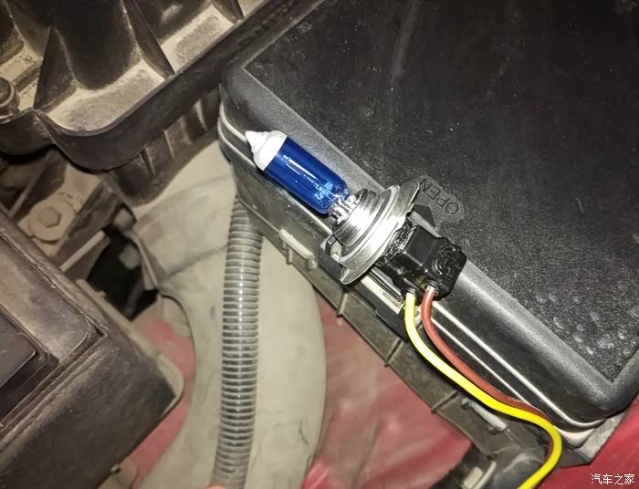 拿下原车灯泡,插上飞尼科斯的灯泡,一定要插紧