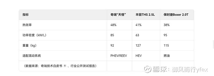 这套动力系统虽然结构简单,但是热效率却很高,达到了48%,远超前段时间爆火网络的比亚迪2.0T水平对置发动机的41.5%。