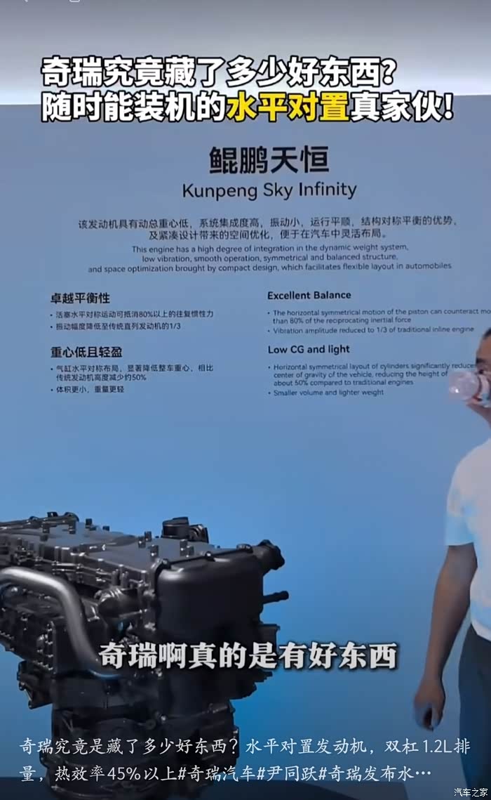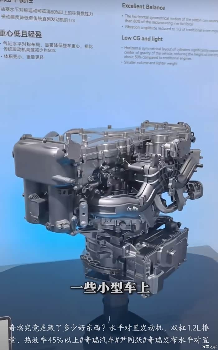 奇瑞前几天混动之夜上发布了一款紧凑级车型上用的水平对置发动机—天恒发动机,算是紧凑级车型的黄金动力。