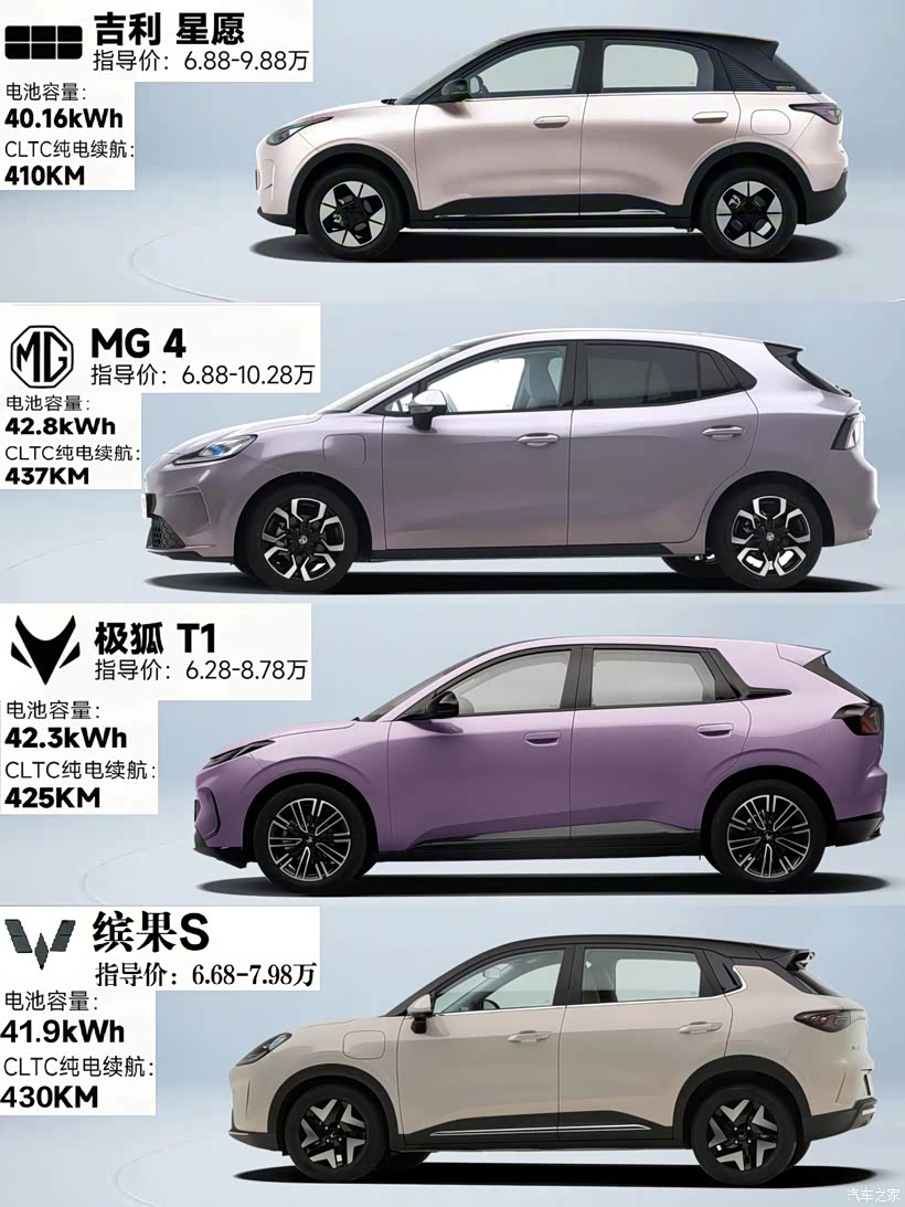 在买车选车的时候,备选的车有很多很多,星愿、极狐T1、MG4、海鸥、海豚、大众ID.3、埃安UT等等,考虑到性价比的问题,快速的把海豚、ID3和UT删除了,海鸥才可以乘坐四人,也快速被淘汰。极狐T1动力偏弱淘汰,MG4其实各方面都不错,就是车不太好看,另外4S店太少了,也艰难的淘汰了。最后是在星愿和缤果S里二选一,综合对比后,感觉是缤果S的各方面比较自己的要求,所以最后选择了缤果S。现在开了2个月了,回头又来问自己后悔与否,答案是有些许遗憾,但是绝对不后悔。原因有很多,我也简单归结起来主要是: