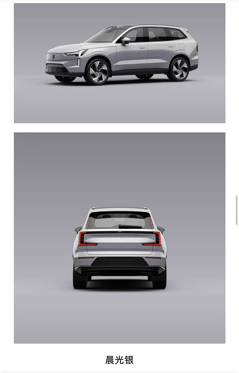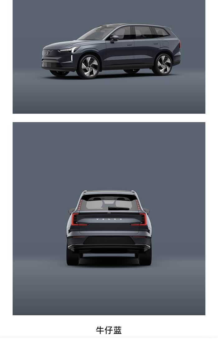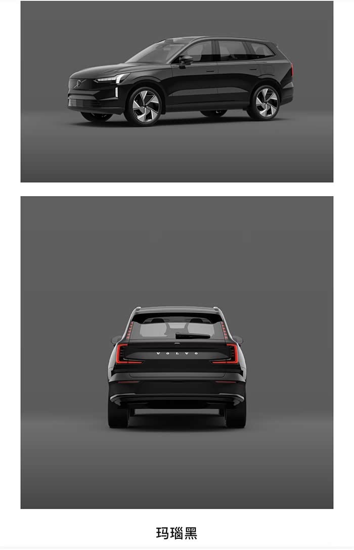 EX90定位为七座大型SUV,这款纯电SUV车型实现了电动与豪华的全新融合。外观上,EX90延续了沃尔沃家族式设计语言,并整合了此前沃尔沃Concept Recharge概念车的设计,车身线条简洁干练,具有北欧极简风格。前脸采用封闭式格栅,内嵌可发光的品牌LOGO,眨眼式雷神之锤大灯很特别,辨识度极高。侧面设计灵感源自于游艇,配合隐藏式门把手以及低风阻轮圈设计,可以帮助其提升续航。车尾设计精致简约,两侧是经典的C型尾灯,车尾顶部配备挡流板,彰显运动风格,车尾中间及下方配备黑色饰条装饰,提升了层次感。