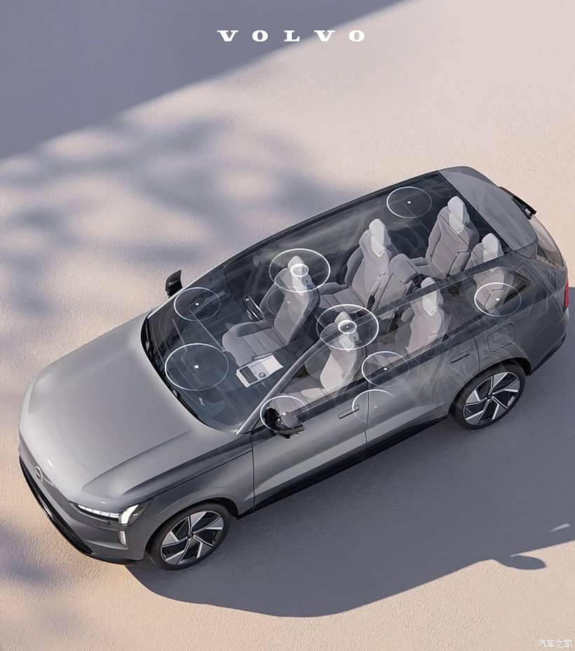 智能安全方面,EX90 搭载了Luminar 激光雷达和DUS 驾驶员感知系统。EX90 配备先进的外部传感器组,包括雷达、摄像头和超声波传感器,结合激光雷达,连续扫描车前环境,从而能够在对周围环境的三维理解中准确、高精度地测算物体的形状和大小。通过对外部环境的了解与对驾驶员状态的感知相结合,EX90 可以检测到驾驶员何时需要额外的支持,并采取相应的措施来保障我们的安全。