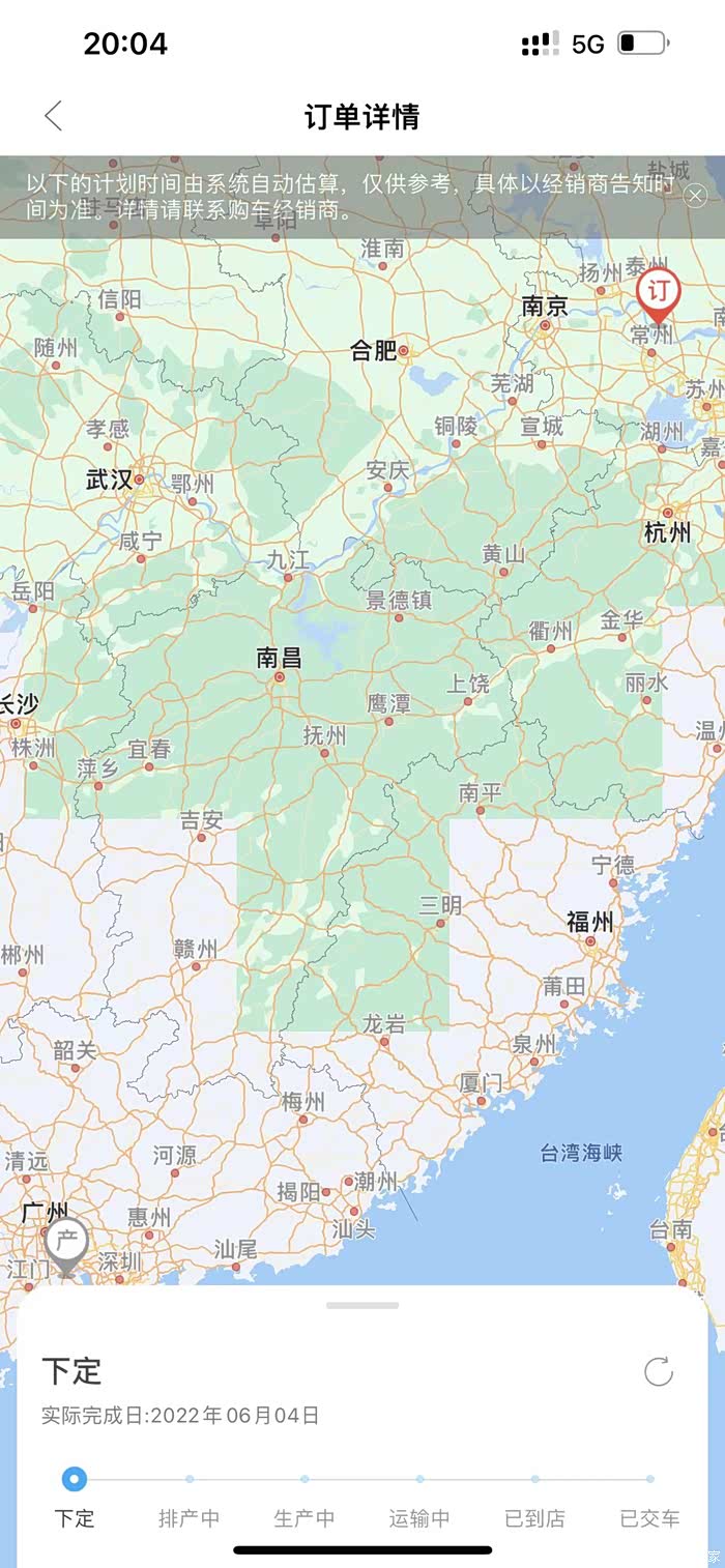 挨了半年多,经济不行,手里没钱错过了3月份的好政策,本省平价提车。。。无奈了,最终闲鱼里看到WD平价提车,然后PY,不影响电池无忧。于是6月4日下定,开始等待之路。