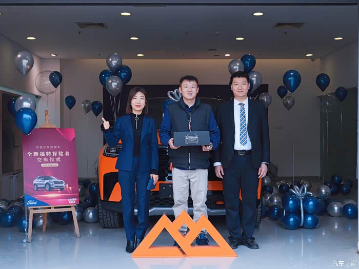 北京博瑞裕丰福特4S店总经理—强薇,亲自交车倍感荣幸,终于,我将心仪已久的探险者昆仑巅峰版迎回了家!硬朗霸气的外观,硬朗的线条勾勒出强大气场,那独特的阿尔金橙颜色在阳光下熠熠生辉,仿佛在诉说着它的不羁。我已迫不及待地要驾驶着它,去探索山川湖海,开启属于我的精彩探险之旅。
