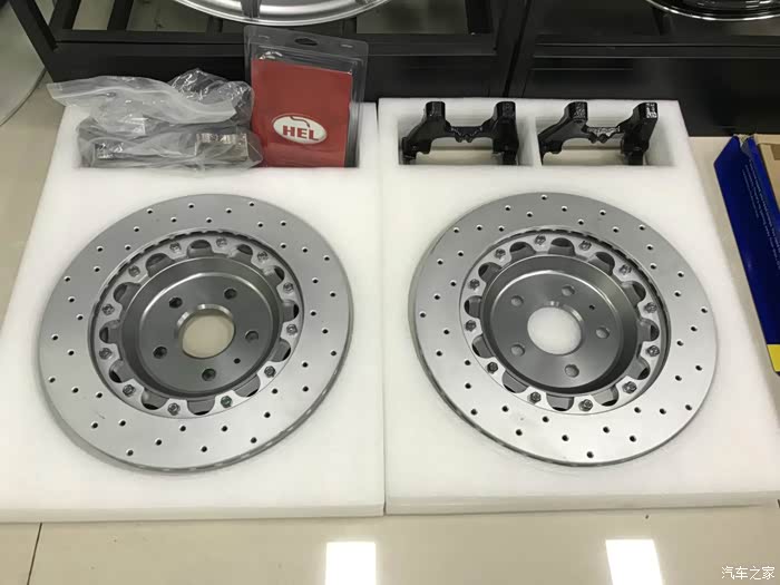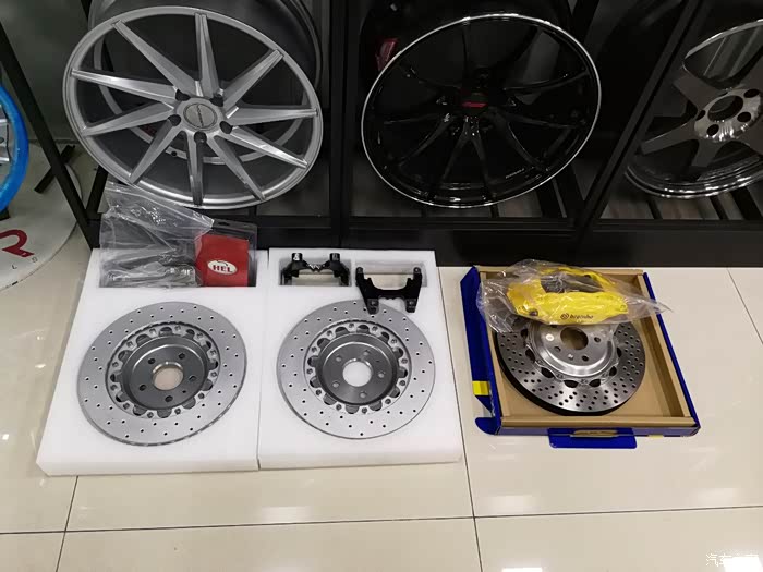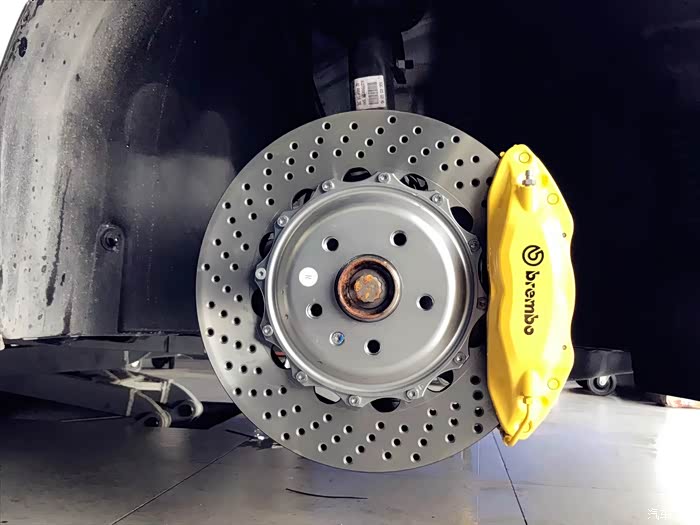 2、升级brembo黄色卡钳,前4活塞,后换加大刹车盘(CZV牌子),前后都是打孔款;