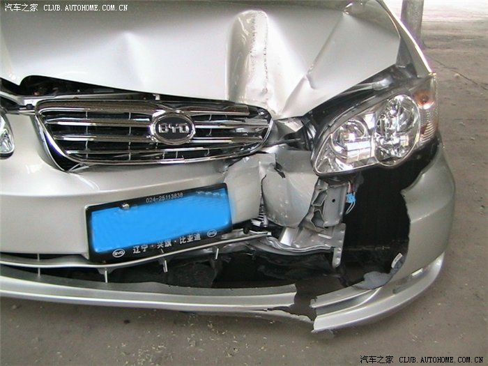 首先感谢本社区版主对我发帖信息进行核实,并最后给我说话的权利。谢谢! 此贴有人可能看了不止一遍,因为其真实度及目的性被删除三次。我希望这是最后一次给大家说出这样的事实! “该车于2009年5月10日在辽阳汽贸(当地的一家车行,他们称为二网)购买,型号为比亚迪F3 1.6AT 雅典银。购车第二天该车无辜不打火,反复启动后打着。之后几天再次不打火,我们报修辽阳汽贸他们让我们找沈阳(4S店),之后对方来人修理。此现象从购车之日到现在一共发生四次,我方绝对没有操作不当之说。使用中发动机故障灯亮一次,到鞍山比亚迪经销处(另本市相邻因为本地无售后)维修检查对方说没有问题,如再发生长亮则开来检查。 5月29日晚,该车发生事故。撞击路灯杆,正副驾驶气囊均未工作。当时给辽阳汽贸销售顾问打电话对方提供我沈阳售后电话让我找沈阳售后,后联系告知明天8:30之后再打电话。第二天与沈阳售后联系,对方要求我提供事故照片,后提供。最后沟通沈阳售后给的解释为撞击角度及情况不够,顾气囊没打开。 从购车之日到今天,比亚迪没有给我们带来方便而是种种问题。特别是在如此撞击下气囊没有工作,而对方除了要照片及一切正常的解释外没做其他积极回应,我们表示遗憾和不解。 提供资料中有该车事故照片,及于售后语音录音。 以上情况属实,保险公司及交警部门均到现场。 以下为事故车照片: