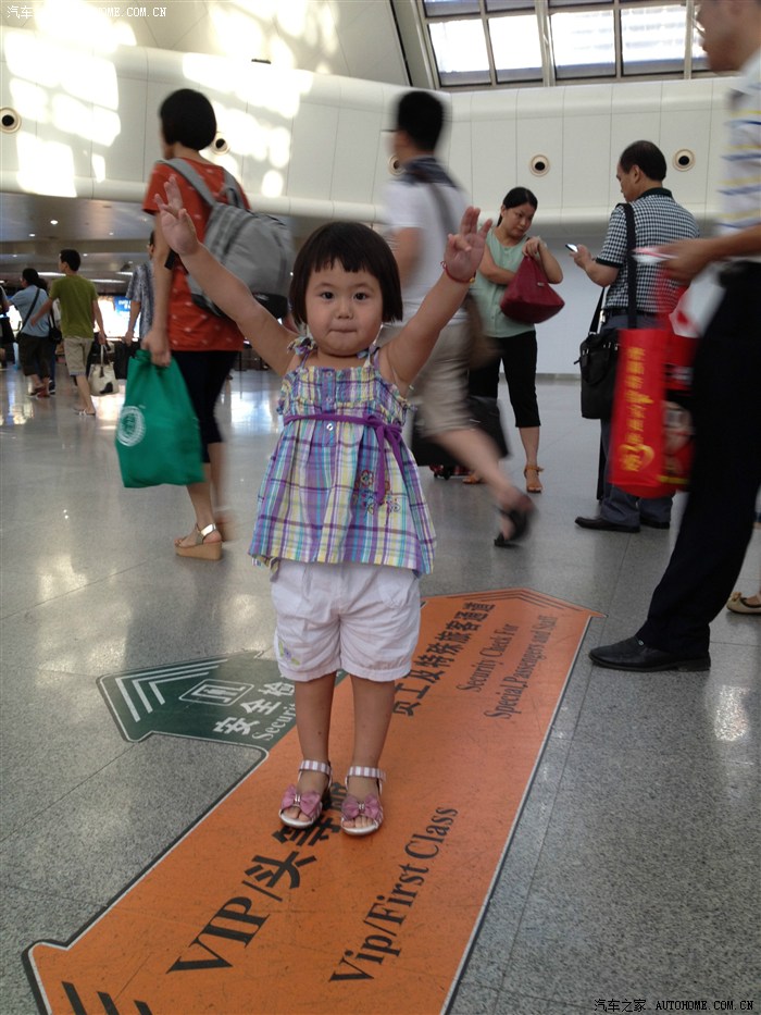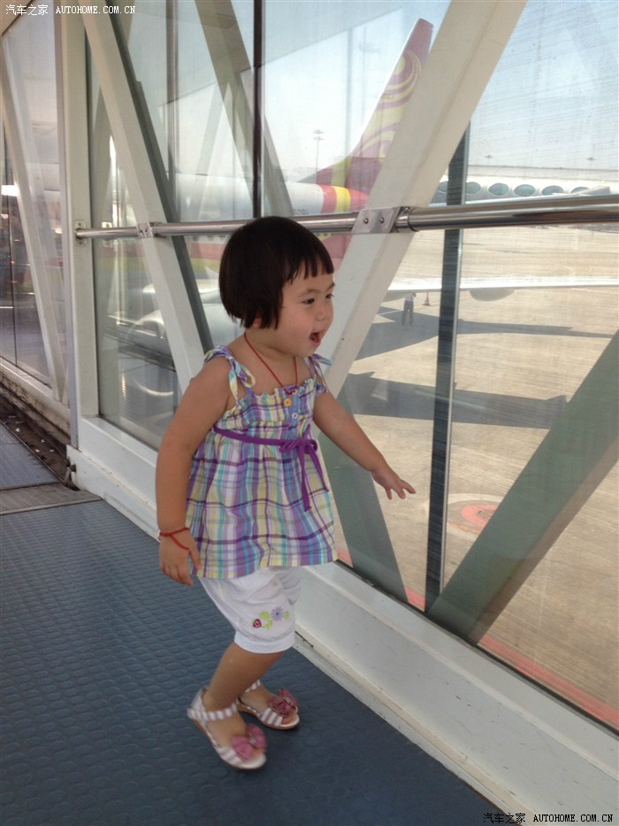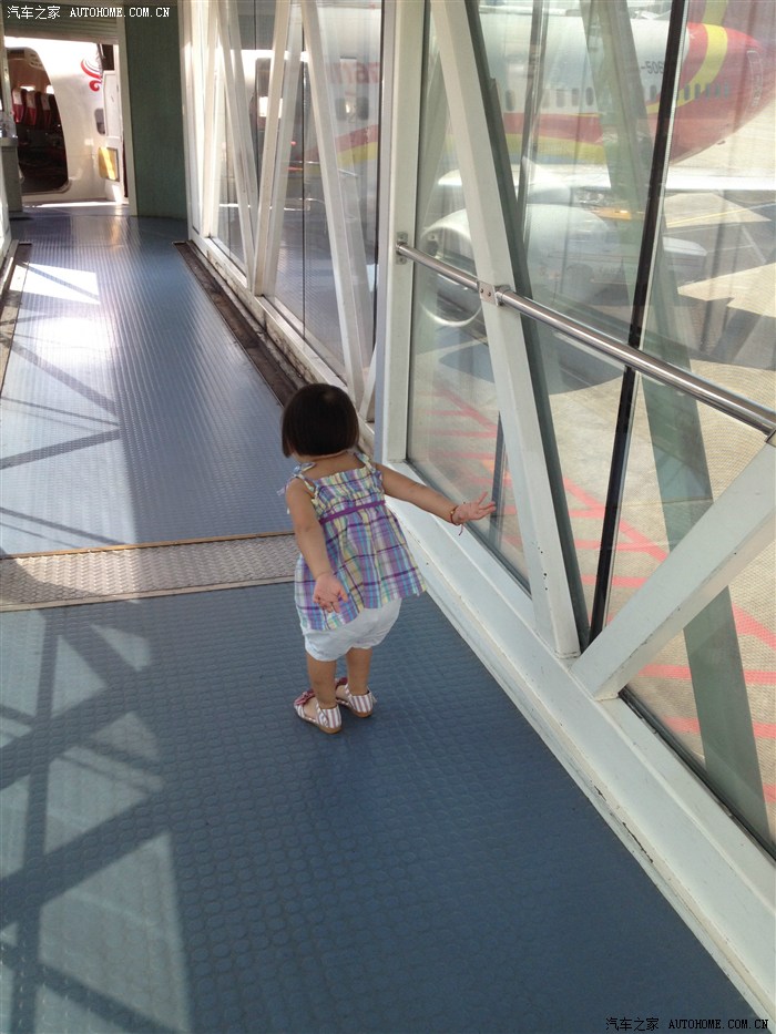 过安检时,真没想到小家伙会那么配合检查工作,安检的阿姨叫点点站上台子,把收举起来,然后转身,点点在那听话极了,后来安检阿姨又叫点点“转过来”,小家伙转过来后,安检阿姨对点点说“给阿姨做拜拜” ,可惜当时忘记拍下来了。