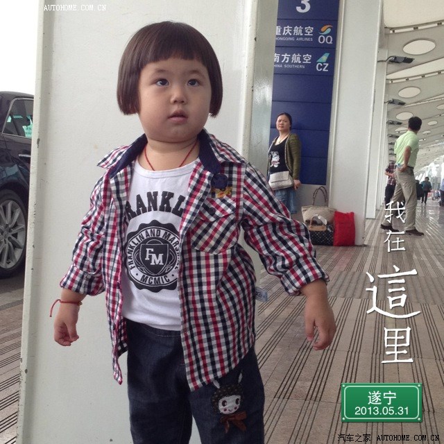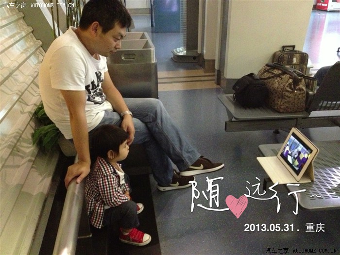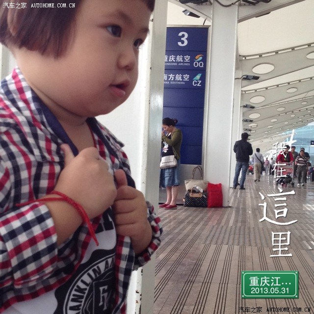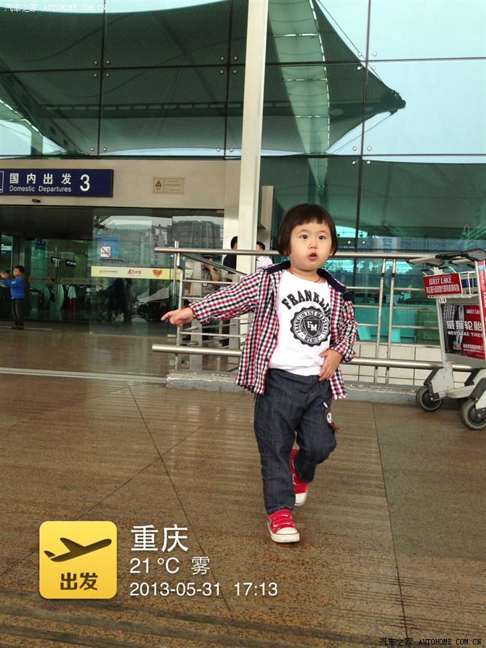 31日下午前往重庆江北机场,小家伙一路上都在念叨“坐飞机去吃虾虾”。